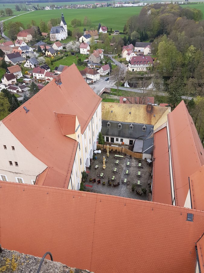 Die erhöhte Lage bietet einen weiten Blick über das Kohrener Land und das Wyhratal und machte die Burg früher strategisch gut verteidigbar.