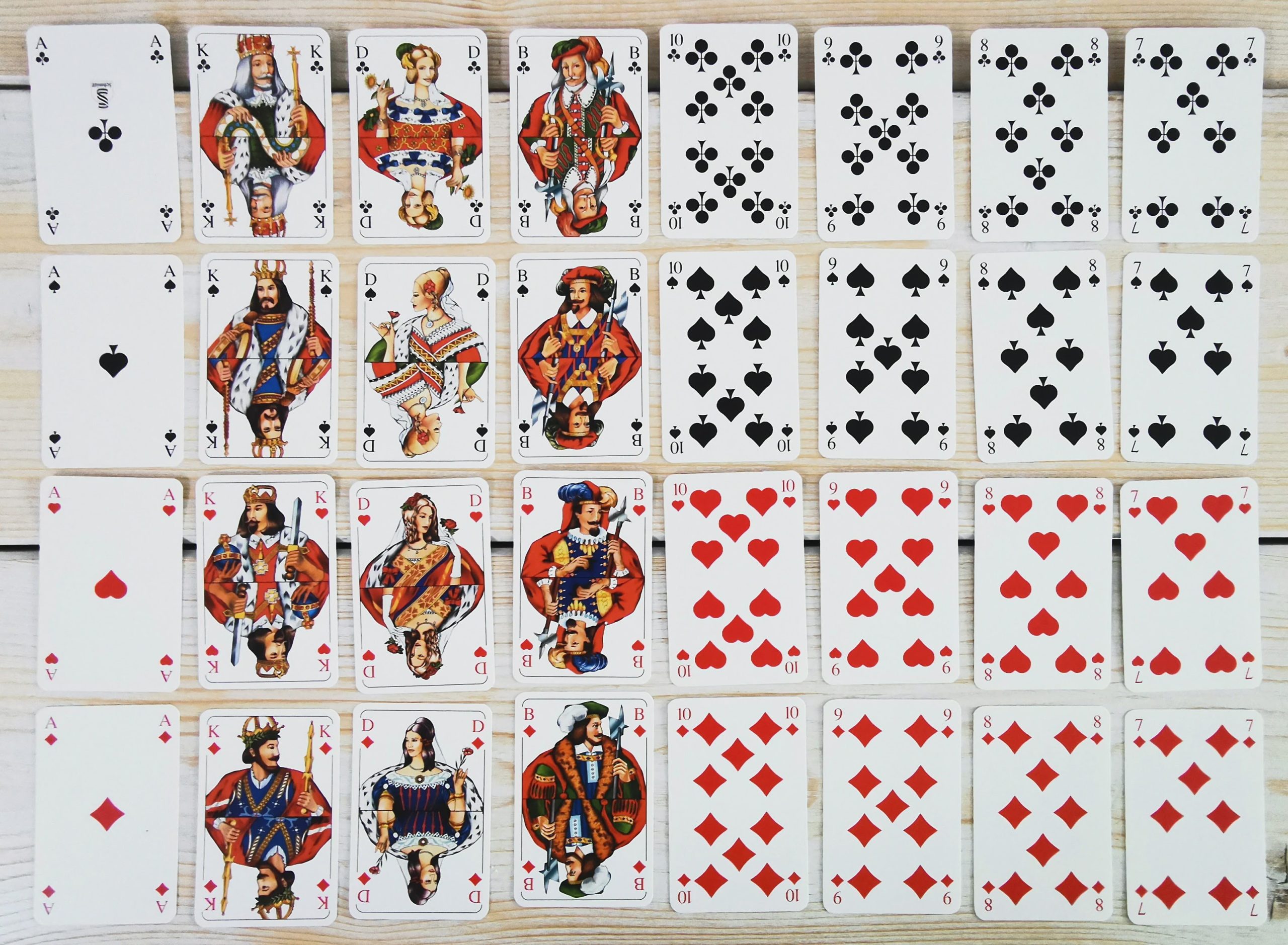 Darunter Karten für die Spiele Skat, Poker, Rommé, Schafkopf, Quartett oder Mau Mau. Karten spielen die Menschen weltweit jedoch schon sehr viel länger. Die ältesten Spielblätter stammen aus Korea des 12. Jahrhunderts. Zwei Jahrhunderte später gelangten die ersten Spielkarten über die Seidenstraße zu uns nach Europa. Eines der ältesten bei uns erhaltenen Sets ist das Stuttgarter Kartenspiel von 1427.