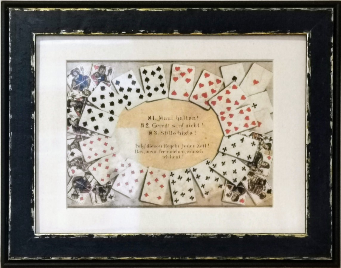 Ein gut gemeinter Rat beim Skat lautet: Maul halten! Geredt wird nicht! Stille biste! Folg diesen Regeln jeder Zeit! Das, mein Freundchen, wünsch ich heut!